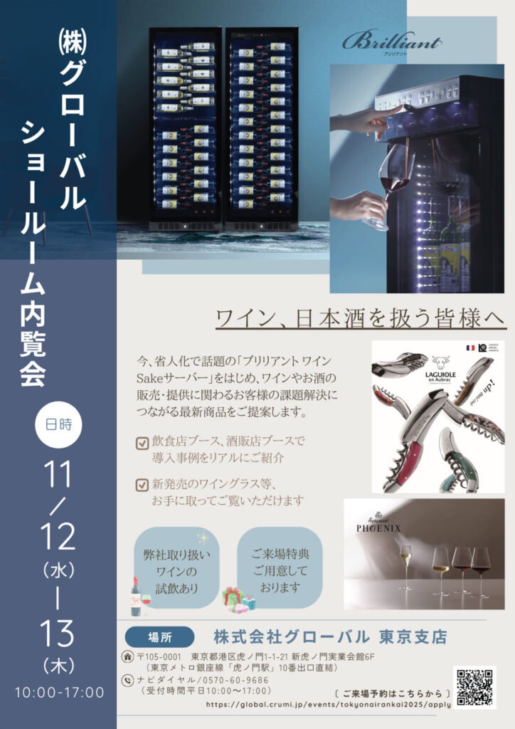 今注目の「ブリリアント ワイン・Sakeサーバー」をはじめ、ワイン・日本酒を扱うお客様の課題解決につながる最新アイテムを一堂にご紹介。