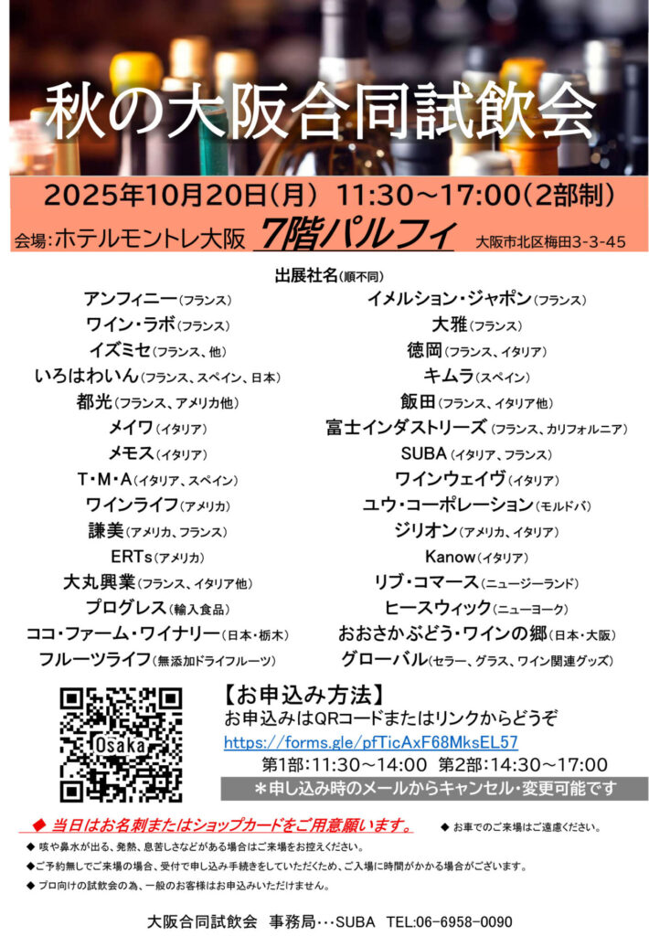 主催 | 大阪合同試飲会事務局/SUBA TEL.06-6958-0090 |