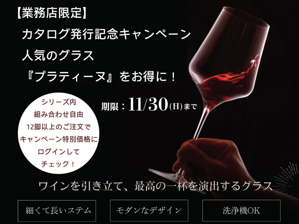新カタログ発行を記念して、当店で一番人気のグラスシリーズ『プラティーヌ』特別キャンペーンを開催いたします!