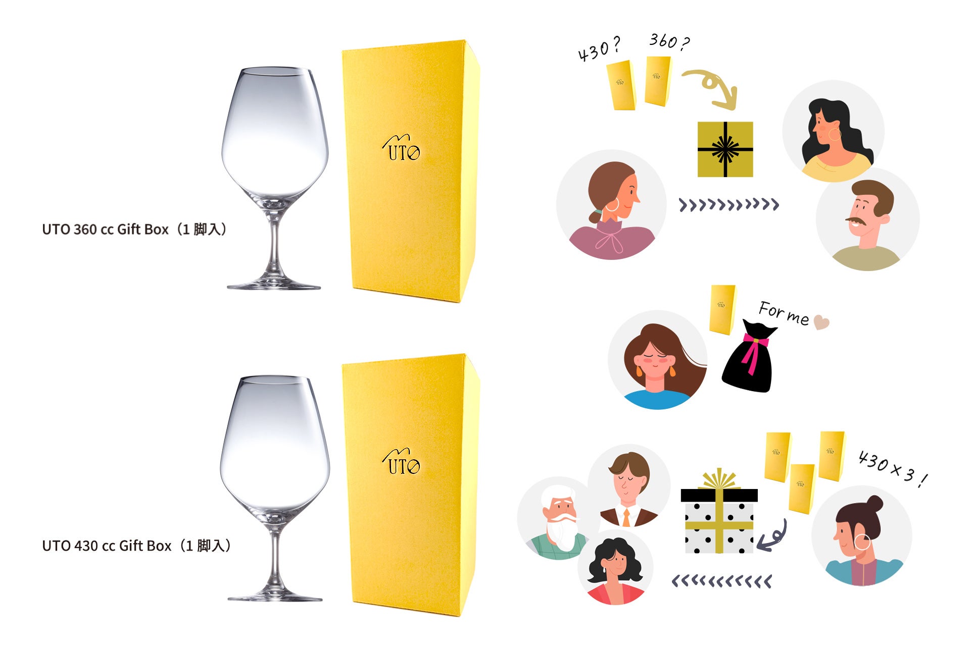 今回のギフトボックスは、360ccと430ccの2サイズをそれぞれ1脚入りで商品展開。いずれも共通仕様のギフトボックスに梱包されています。