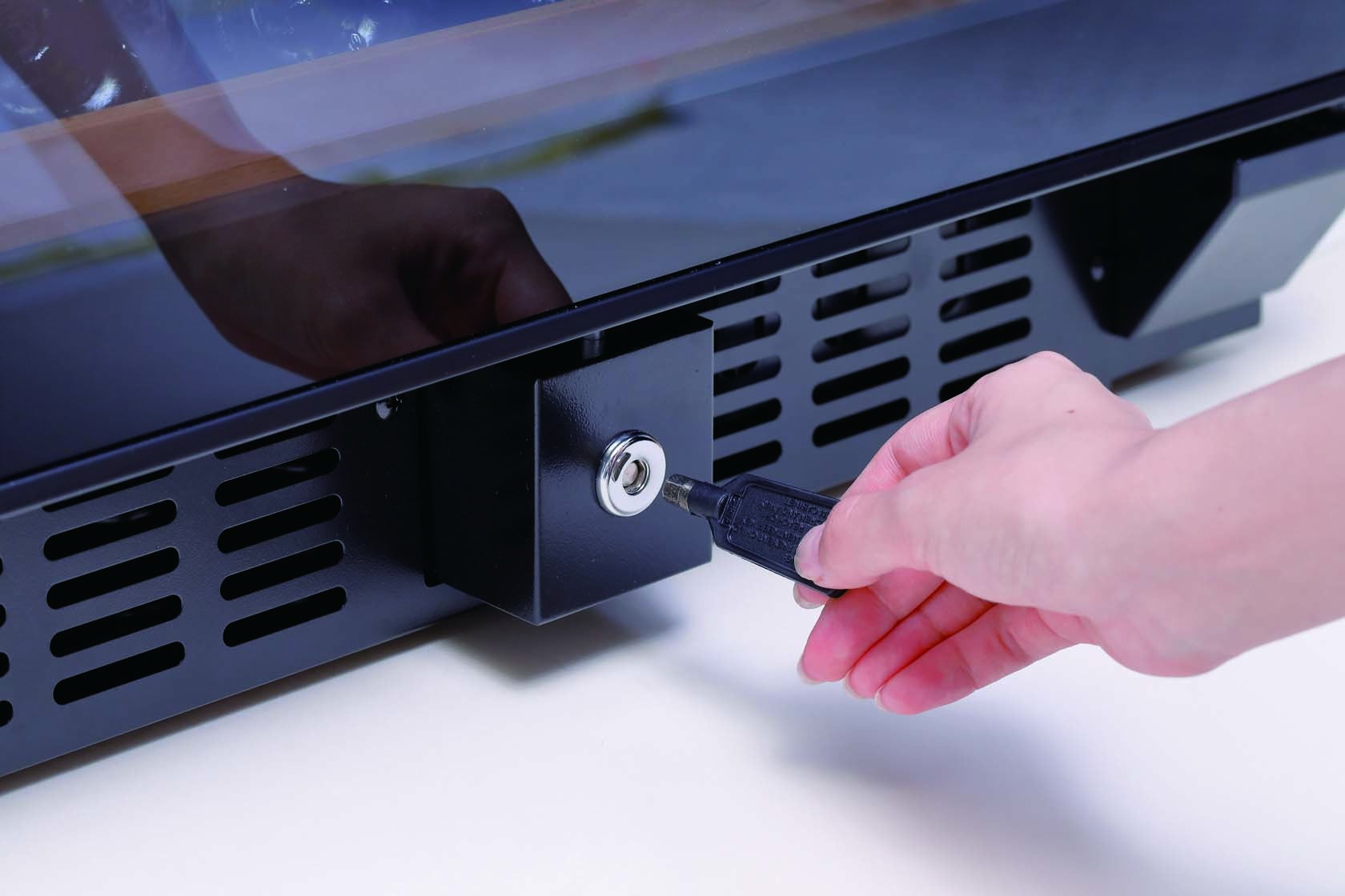 ■オープンエリアでの設置や万一の地震にも安心の鍵付き