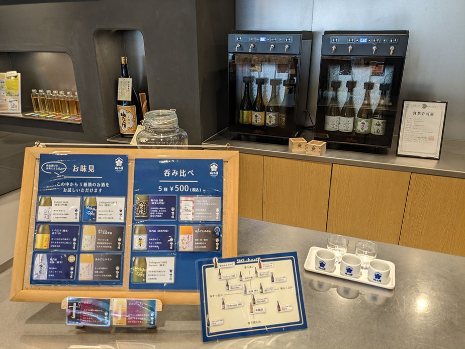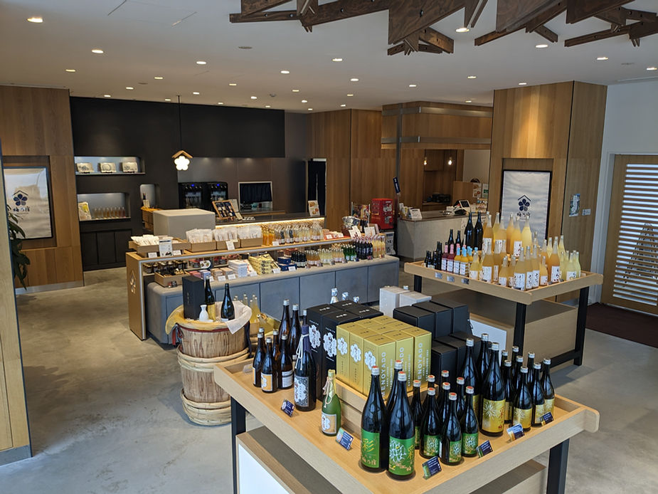 2022 年7 月1 日に「新しい酒文化を創造する蔵」として新蔵をオープン。「日本酒のおいしさを求めながら楽しさも探っていく」、そんな梅乃宿酒造ならではの多彩なラインナップで試飲も楽しめる直営店。