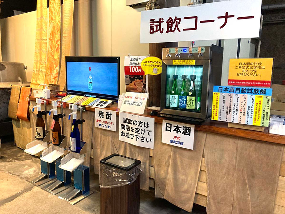 歴史ある酒蔵通り『肥前浜宿』の観光酒蔵『肥前屋』。売店エリアに試飲コーナーを設けており、コロナ禍での試飲環境づくりと試飲サービスの省人化のため、4本用サーバー1台を導入。