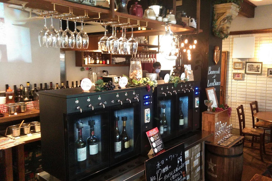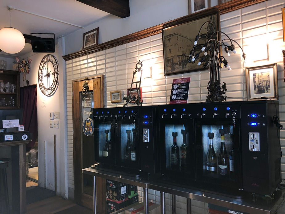 『レオンビアンコ』では、コイン式サーバーを2台導入し、品質管理をしながら北イタリアを中心に、世界各地の厳選ワインをセルフのグラスワインサービスに活用中だ。