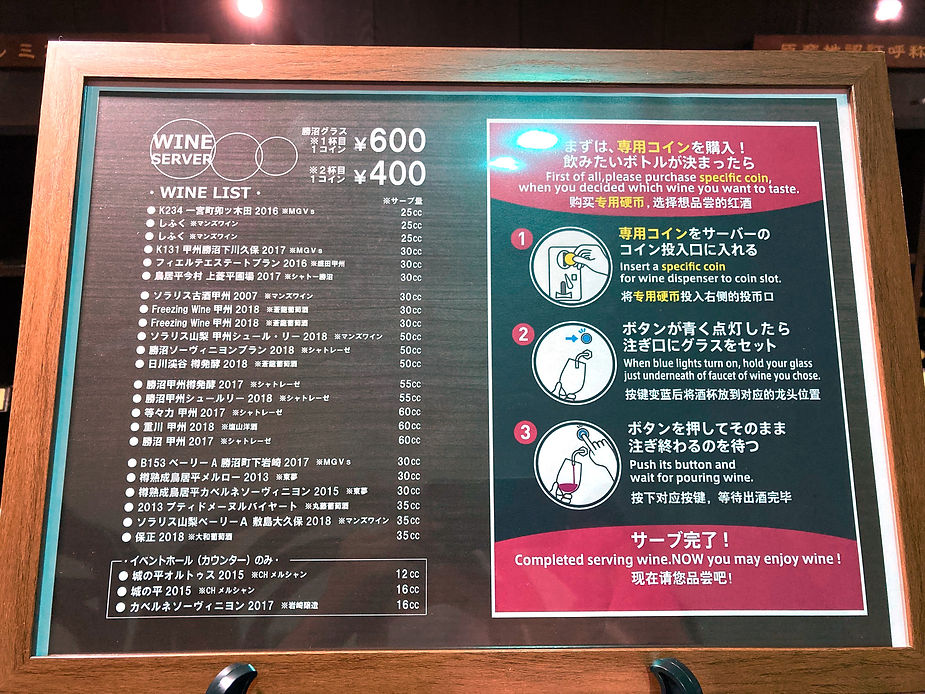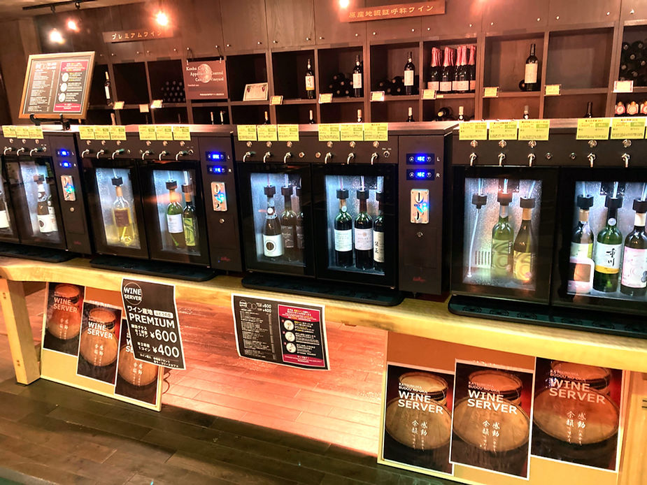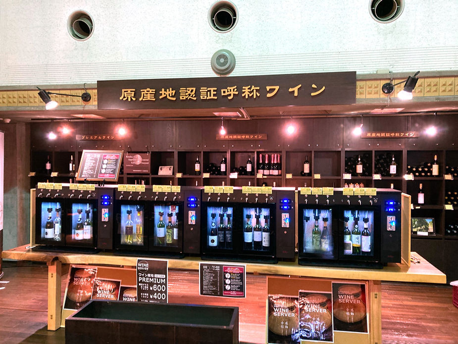 その山梨県が誇る、日本最大級のワインショップを有する観光施設である『甲州市勝沼ぶどうの丘』に合計15台のファンヴィーノ コイン式ワイン・Sakeサーバーが導入され、館内あらゆるところで、甲州ワインを盛り上げる。