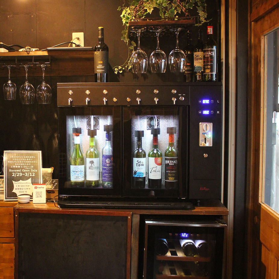 また今回の導入にあたって、ワインは完全にセルフサービスとして省人化、人件費削減に繋げる。