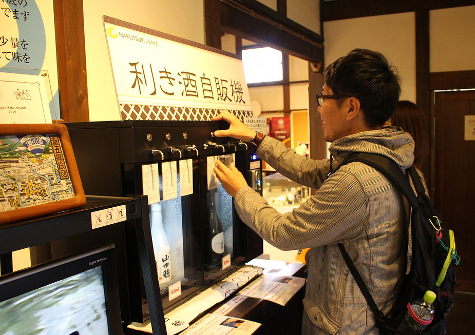 同館内にある、試飲・利き酒コーナーに導入いただいたのが、新しく発売されたばかりのファンヴィーノ コイン式ワイン・Sakeサーバー 6本用。白鶴酒造が誇る、香り豊かで繊細かつ深い味わいの『天空』や、純米大吟醸酒の有料試飲販売に採用された。劣化防止の保存機能だけでなく、ボディのメインカラーがブラックであり資料館内に設置しても違和感がないことも導入の決め手。