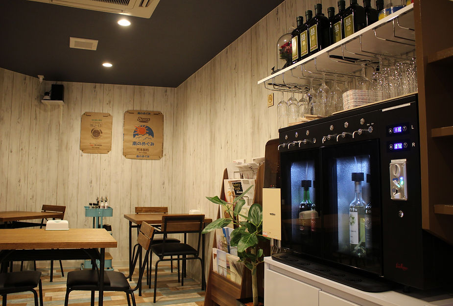 2Fはイートインスペースになっており、今回ピッツァと合わせて楽しんでもらうワインやお酒用に、2Fは無人化での提供を目的に、ファンヴィーノ コイン式ワイン・Sakeサーバー 6本用 を採用。同店が当セルフワインサーバー導入1号店となり、飲食店での初の導入例として今回取材させていただいた。