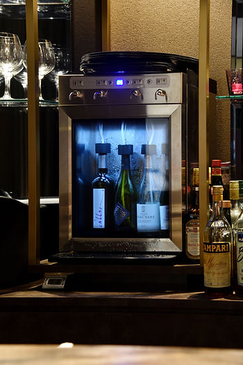 エントランスから続くバーカウンターに『ワイン・Sakeサーバー』を2台設置し、赤と白で使い分けている。「いいワインほど劣化しにくいように感じるので、グラスでもグレードの高いワインが出せるようになりました」と小阪シェフ。